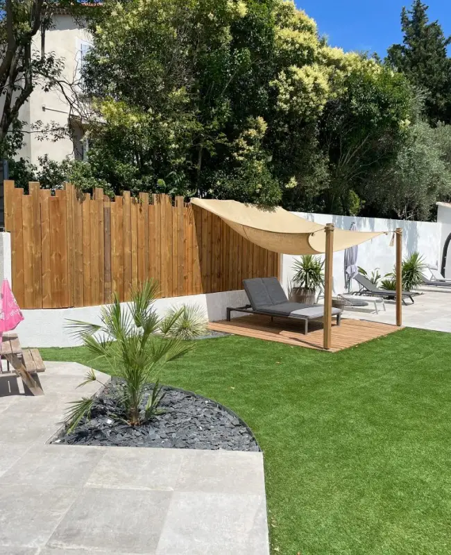 Optez pour du gazon naturel en plaques ou une pelouse synthétique, selon vos besoins d'entretien et l'usage prévu pour votre espace vert.
